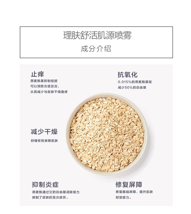 天然提炼燕麦酰基提取物,减少组胺释放引起的敏感反应,快速止痒。加强皮肤天然保护功能,轻松应对外界各种挑战。(临床验证,两周内,使用2%的燕麦酰基能显著减少65%的皮肤瘙痒症状。)