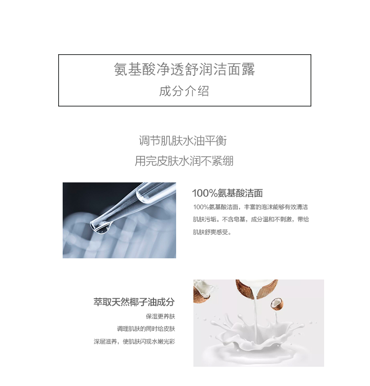 纯氨基酸洁面,高效清洁脸部油污的同时,不伤皮肤角质层。