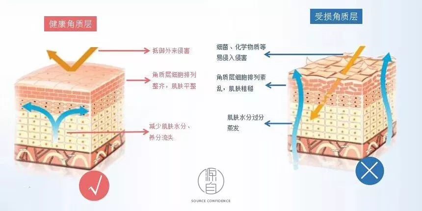 一旦角质层和表层受损肌肤内部水分就容易流失,所以大家无论是开着空调在办公室或者家里的时候,还是在商场购物,千万不要忽视早晚给肌肤喝饱水。