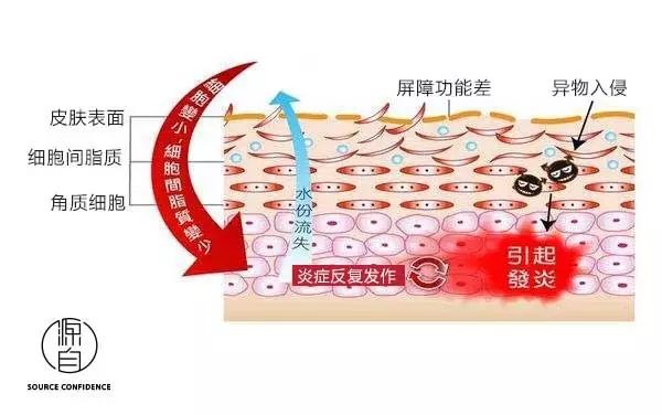 酒精加速皮肤细胞的水分流失,导致细胞体积变小,细胞间脂质流失,皮肤的屏障功能变差。