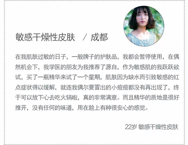 护肤只是手段,让皮肤恢复健康才是根本目的。正如那些长期使用源自的顾客反映的那样,虽然源自的产品一开始使用起来没有那么惊艳的效果,但坚持使用一段时间,能感受到皮肤由内而外的在好转起来。