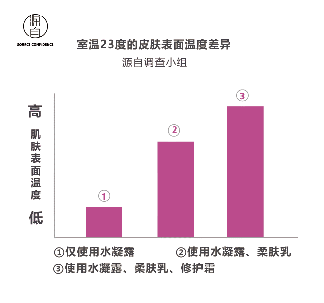 从调查结果可知,使用源自水凝露、柔肤乳后,叠加修护霜,可以更好地提升肌肤表面温度,保持修护成分活性,助力细胞修复新生。