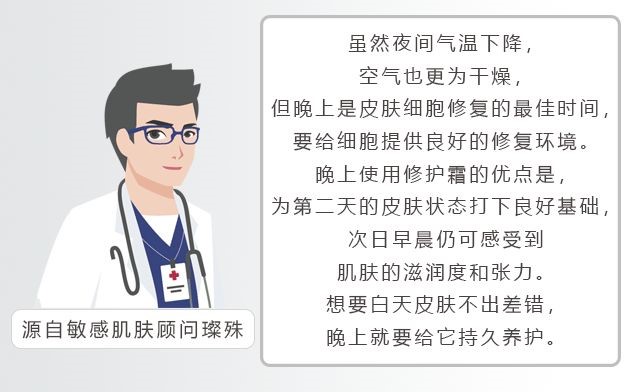 源自护肤顾问璨殊建议敏感肌肤坚持每晚使用修护霜,能更好地维持肌肤稳定状态。