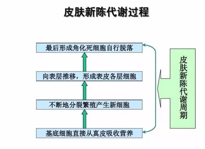 皮肤由基底细胞分裂,形成新的细胞,不断往上推挤,最终会出现老化的角质细胞自然脱落的情况,一般这个过程需要28天的时间。